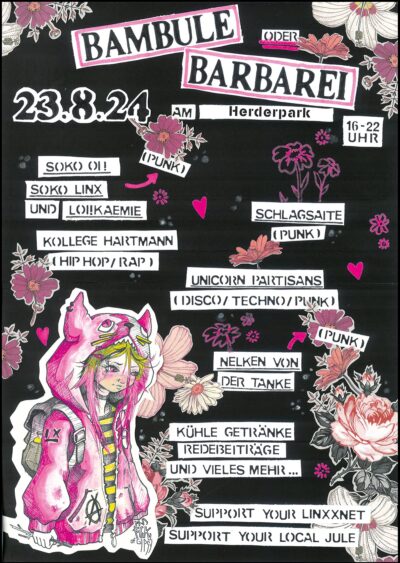 Wie wir wissen gibt es gute und schlechte Zeiten – wir überlassen euch Anwesenden hier die Bewertung der aktuellen Zeit – was wir aber wissen ist, dass es noch schlechtere Zeiten für kritische Gendenk- und Erinnerungsarbeit ohne Jule und das linXXnet wären.
